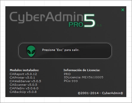 CyberAdmin PRO 5 (Activación 1 Equipo Servidor/250 PC Cliente)........35.00 Dolares (US)/ 590.00 MXN (México)