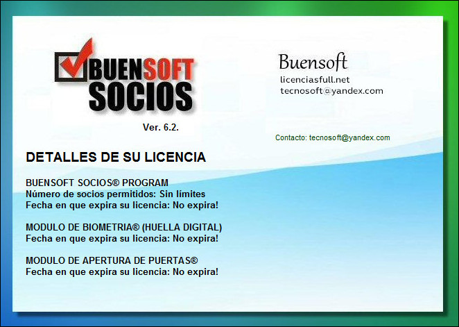 Buensoft Socios 6.2 con Modulos Activos (Biometria y Puertas) (Activación para 1 Equipo )