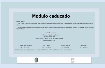 Si descargaste un parche/crack de una llave que aparentemente te registro el programa pero sólo te duro un tiempo y ahora ya te aperecio modulo caducado y deseas recuperar todos tus datos, con nuestra licencia se desbloquean al instante todos los modulos caducados y se recupera el 100% de tu base de datos e información.